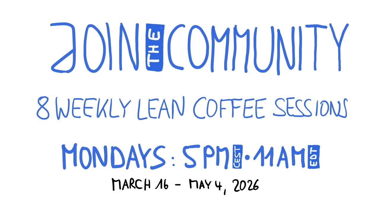 Every Monday from March 16 to May 4, 2026 (5 PM CEST / 11 AM EDT), we run a Lean Coffee: